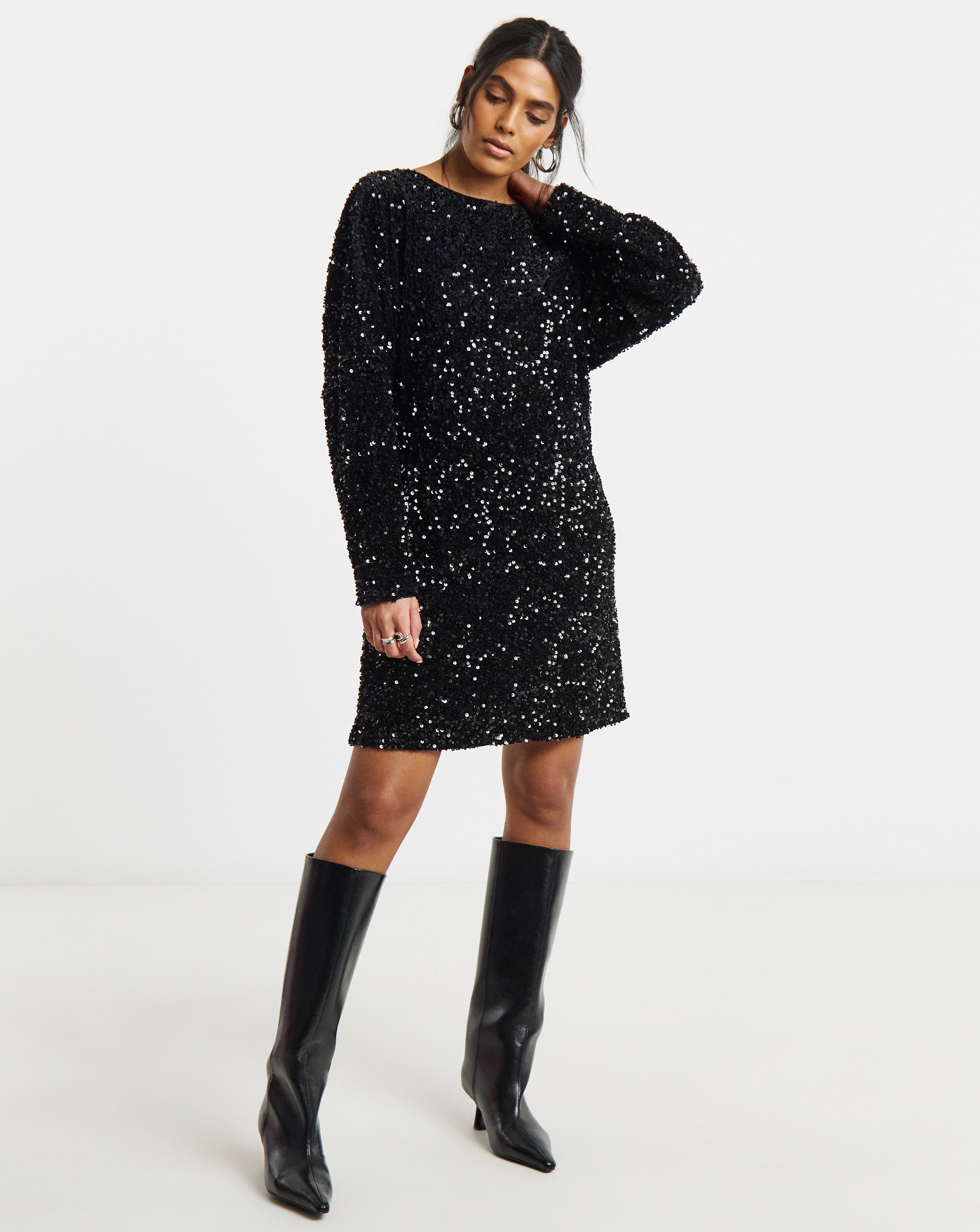 Sequin Sensation: A sparkly sequin dress is the ultimate statement for Christmas day with sequins catching the festive lights beautifully and make every moment feel special. Opt for stretchy fabrics that move with you—crucial for that second helping of Christmas pudding.