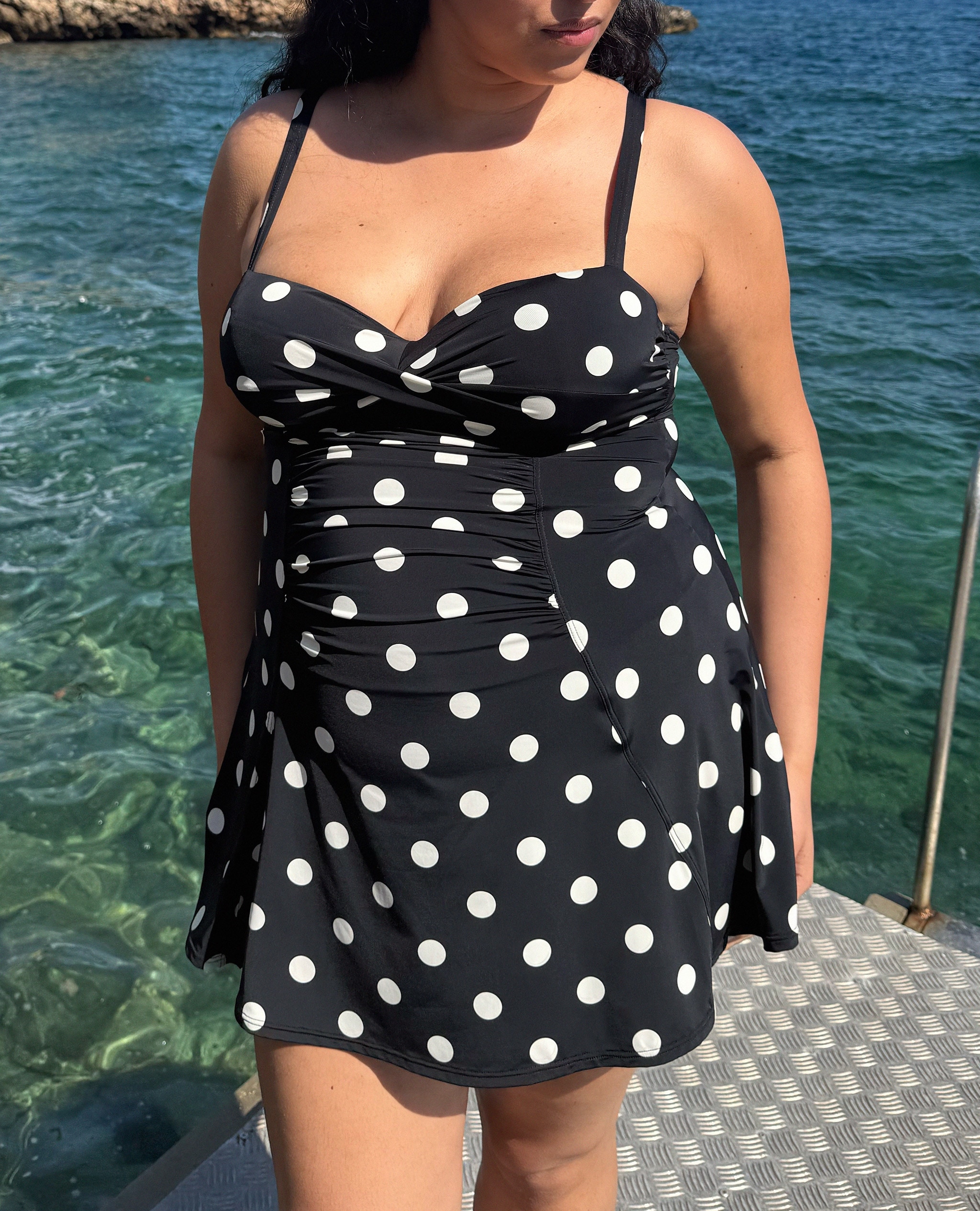 Featuring a skirt-like overlay and firm-to-medium control, a swim dress helps add coverage to your lower body.