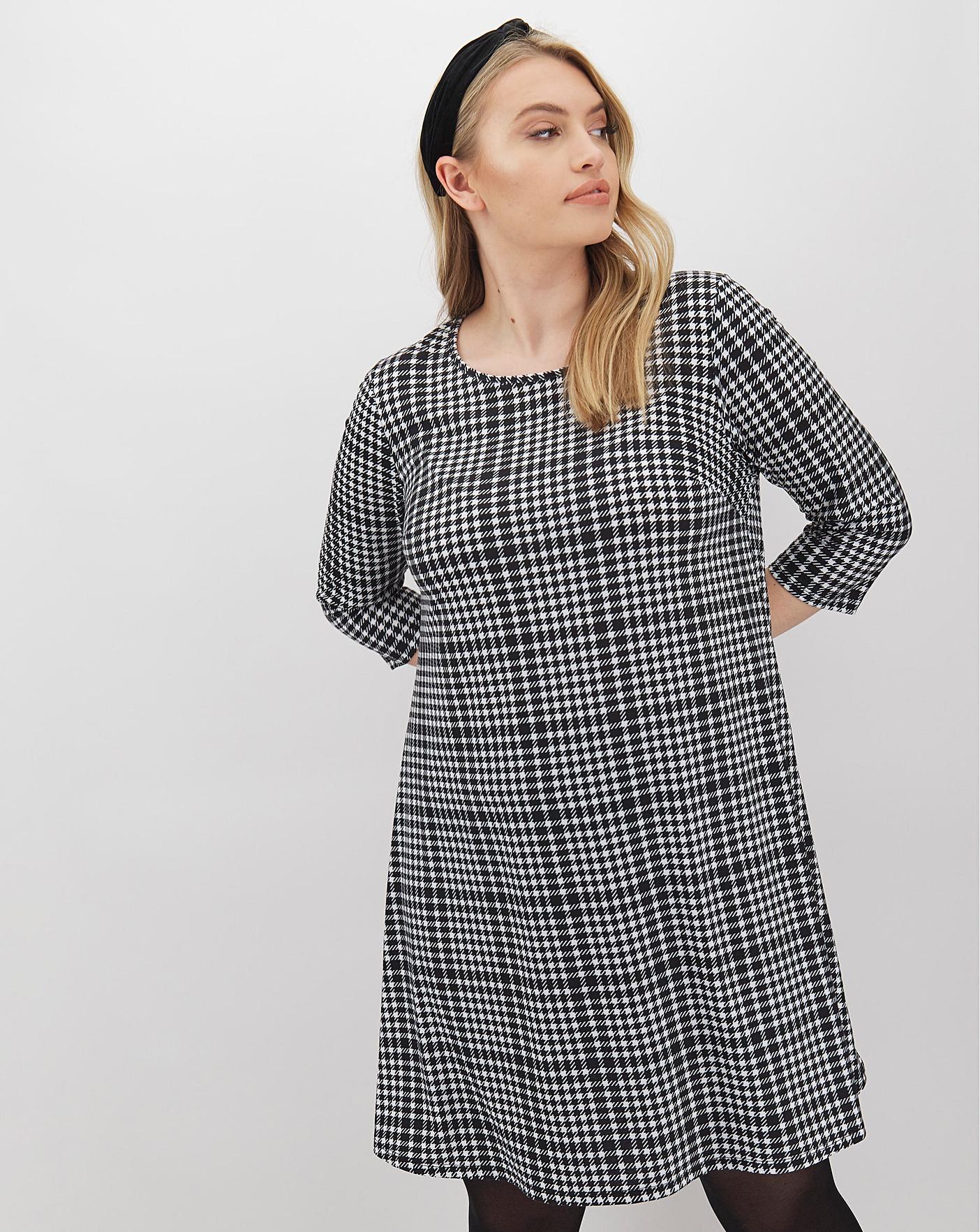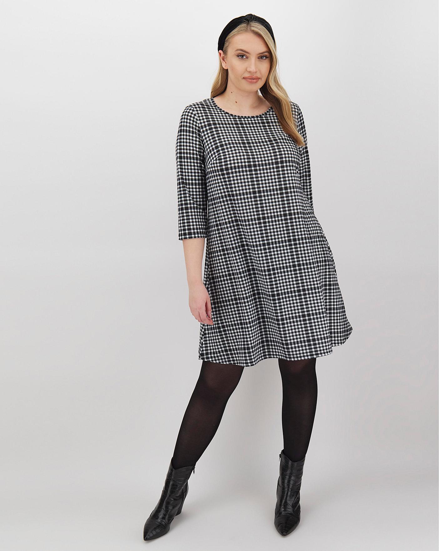 Our must-have swing dress is cut to a flattering swing shape. It features three-quarter sleeves, a scooped neckline and is made from a soft, stretchy jersey fabric. Style with some ankle boots or layer up with your roll-neck sweater for an effortless daytime look!