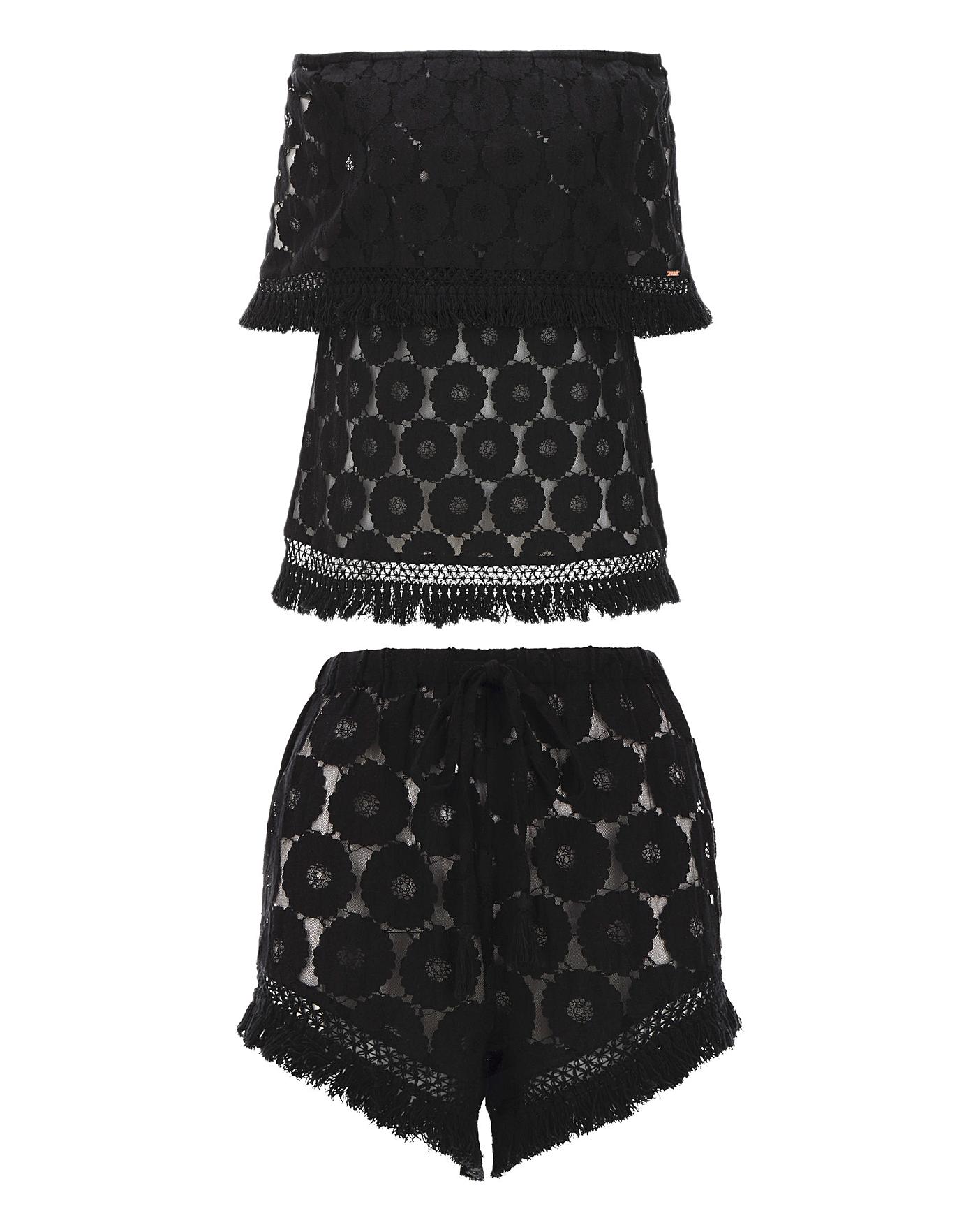 Relax by the beach in style with the Figleaves Curve beach set. With bardot neckline & tassle trim edging it's the perfect boho chic piece. Featuring beach shorts & bardot top, they are the perfect pieces to wear together or separately with your Swimwear.