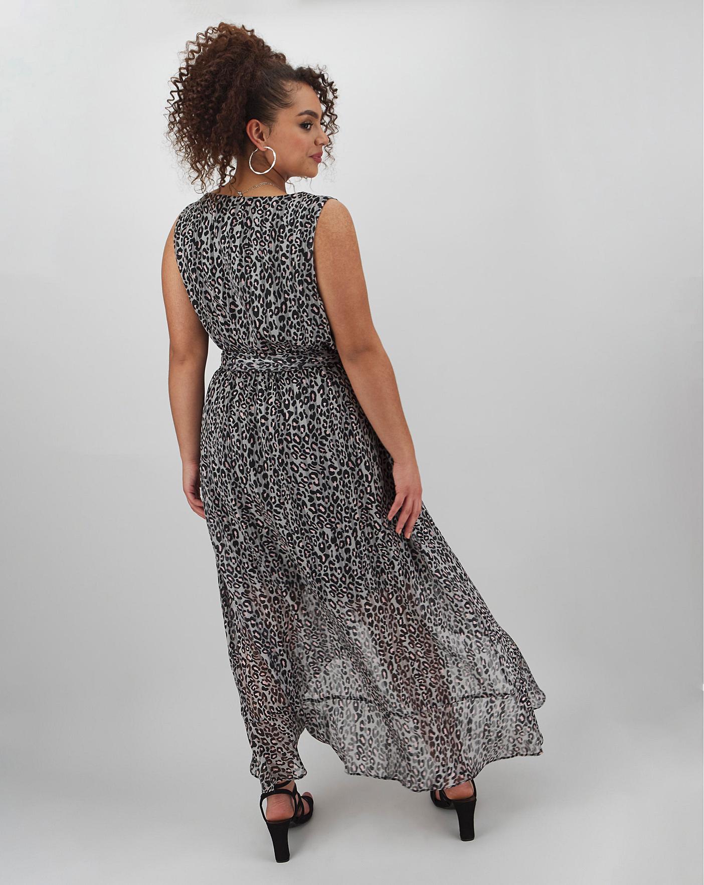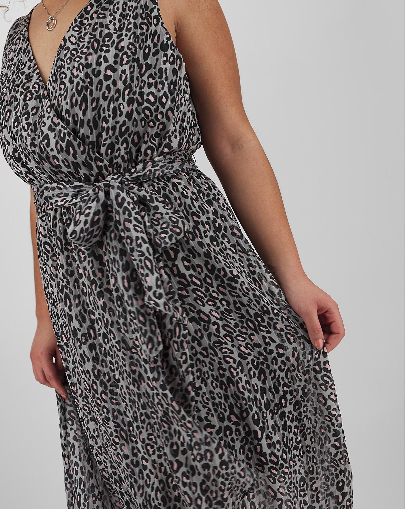 Exclusive to us - Joanna Hope. This gorgeous leopard print maxi dress features a flattering V-neck and wrap detail with elasticated waist. This dress comes lined in a jersey fabric alongside a separate belt and thread belt loops. Pair with heels or sandals for your perfect summer occasion look.