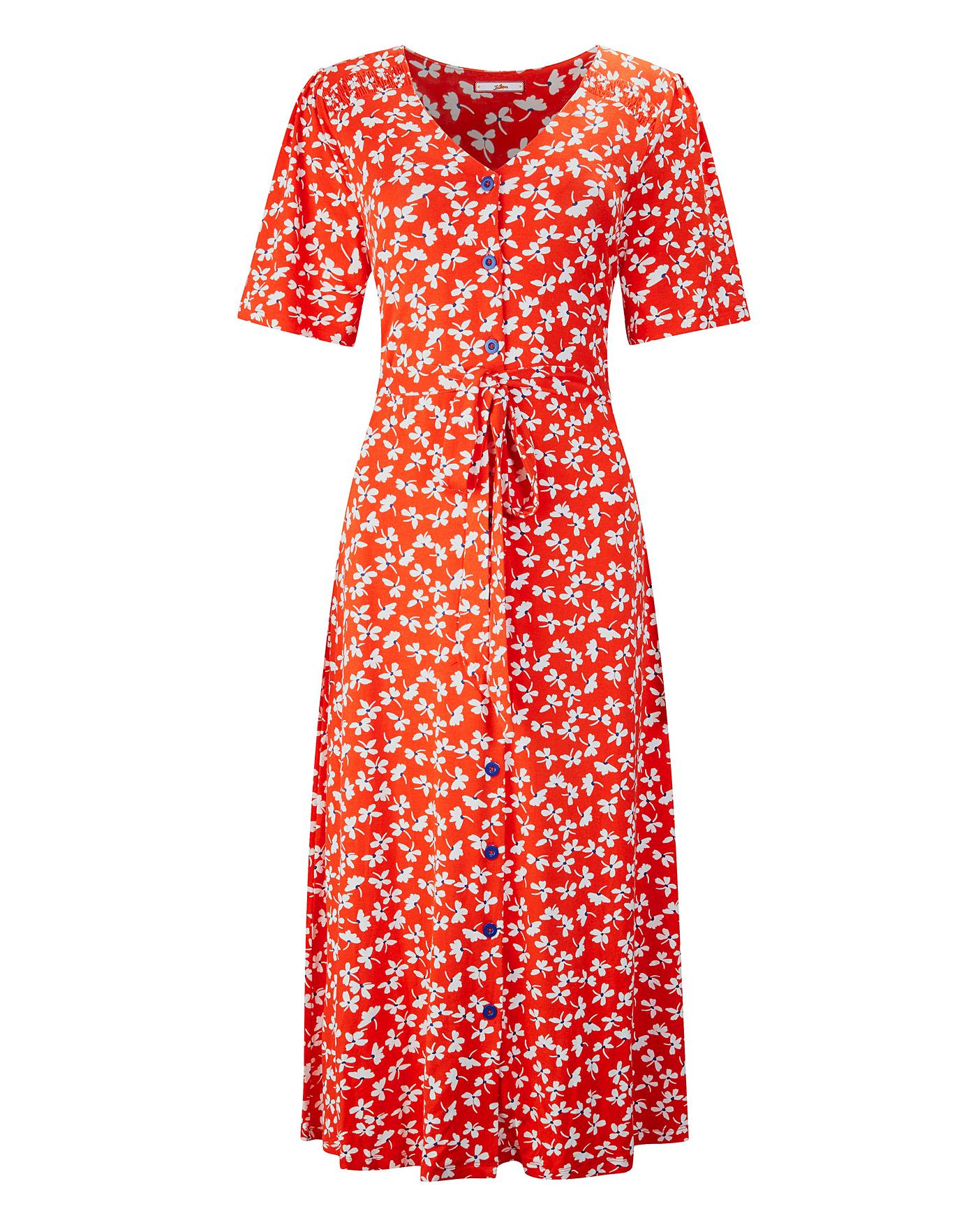 Exclusive to us in sizes 20-32. Feel full of the joys of summer in this beautiful dress. Pops of blue give this delightful print plenty of personality, for a playful and pretty style.