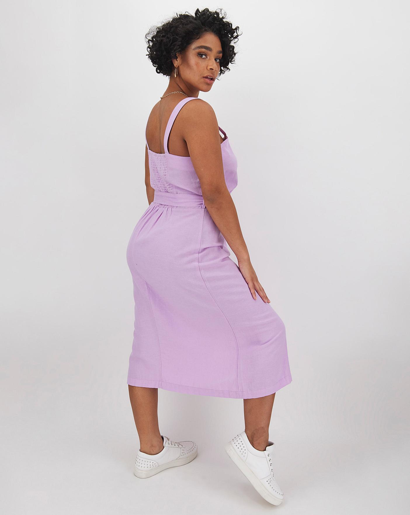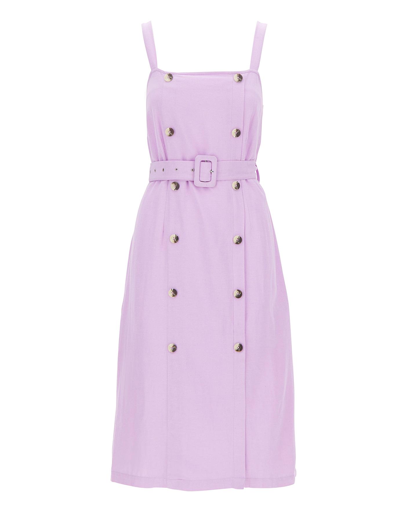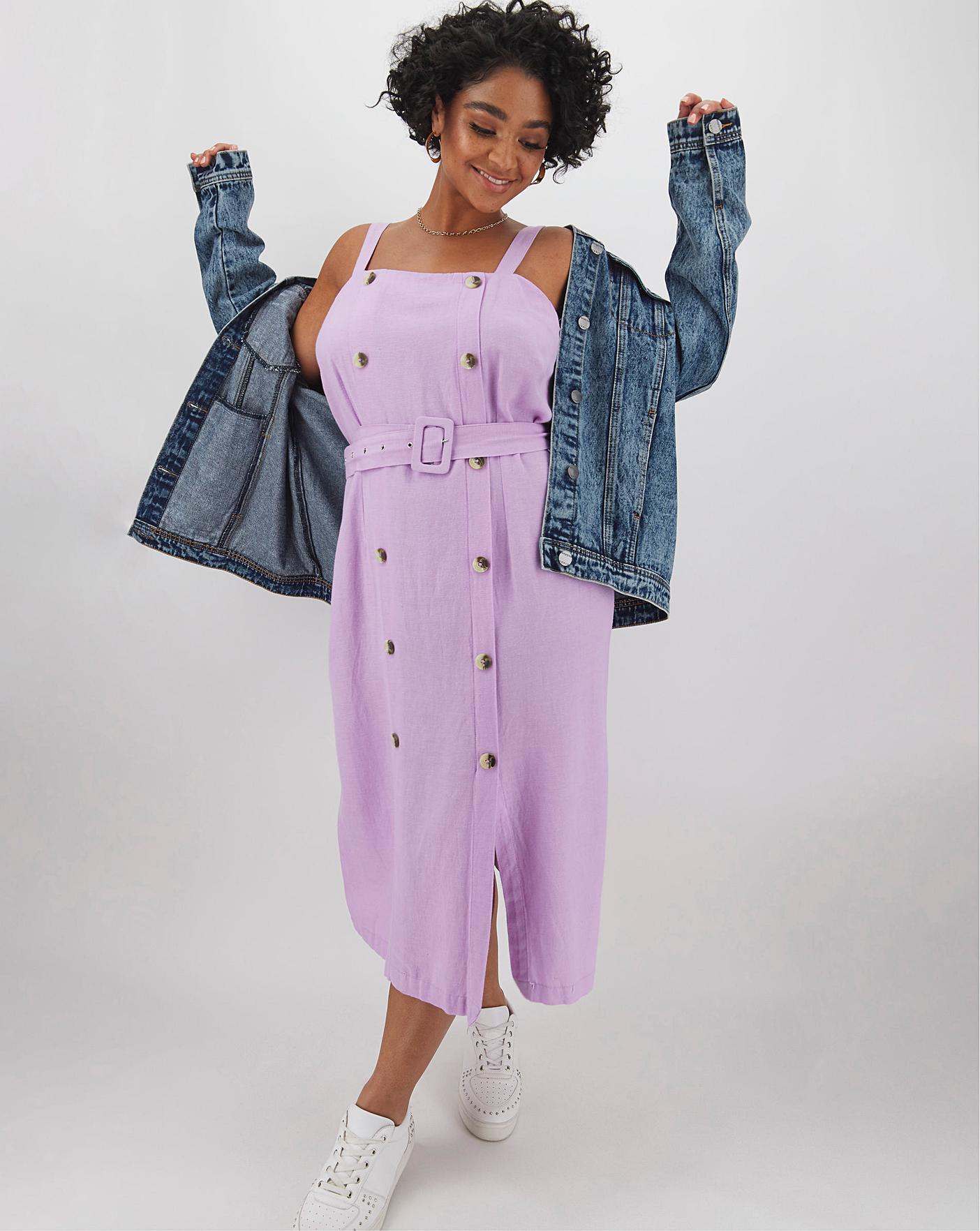 Totally on-trend and totally transitional, this button-down pinafore dress is a wardrobe style staple every woman needs to own. Featuring comfortable soft stretch linen and two front patch pockets. Layer over a seasonal print tee to complete the look.