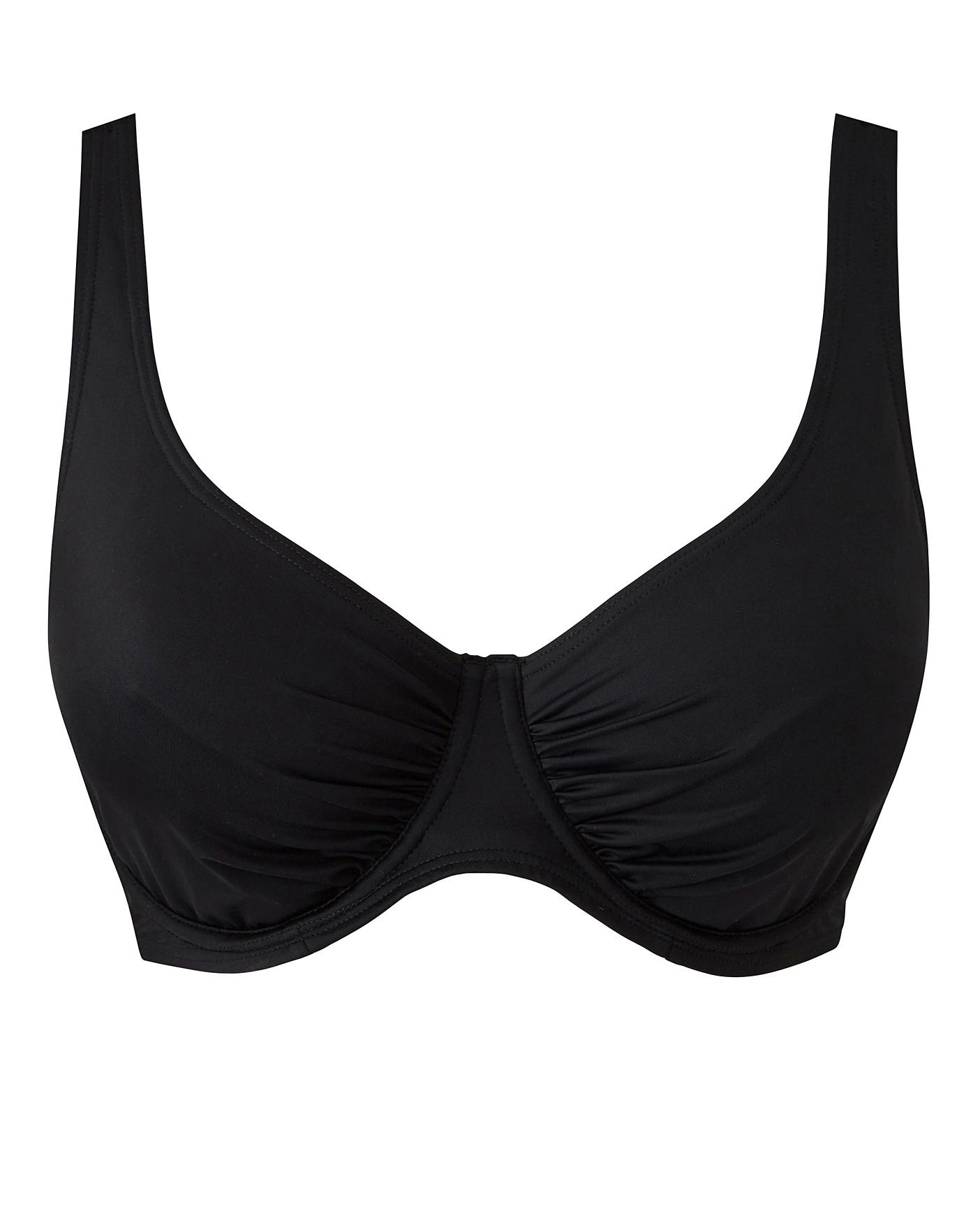 Underwired bikini top designed to give ultimate support. This bikini top offers firm control around the back. Adjustable straps and a bra back-clasp fastening for extra comfort.
