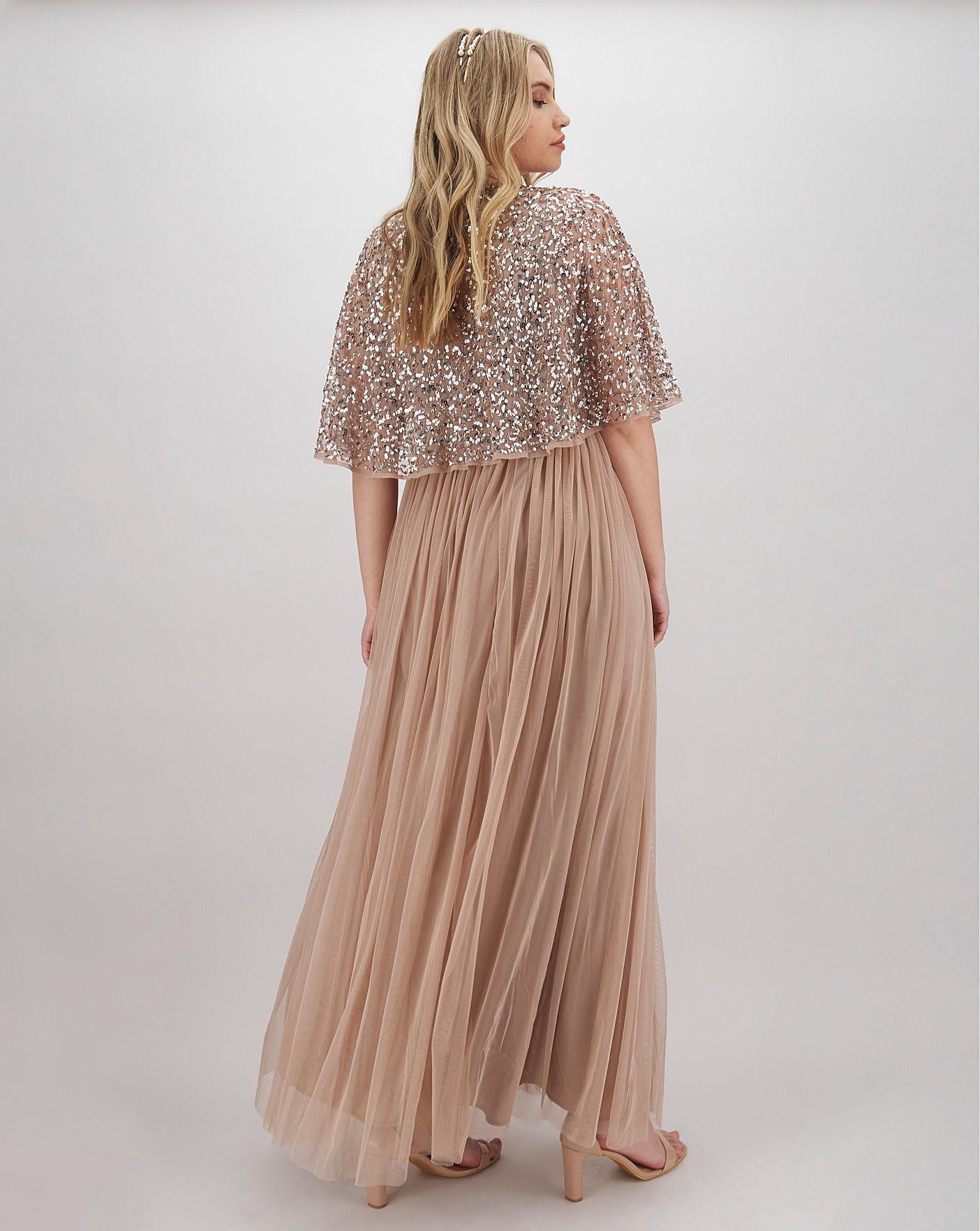 Feel elegant in this kimono sleeve maxi dress from Maya Curve. In our classic taupe blush, this dress features a V-neck with wrap detail and kimono sleeves which create a beautiful cape effect, and is finished with a floor-length tulle skirt with heaps of swoosh factor so you can dance the night away! Team with heels and an embellished clutch bag to complete the look.
