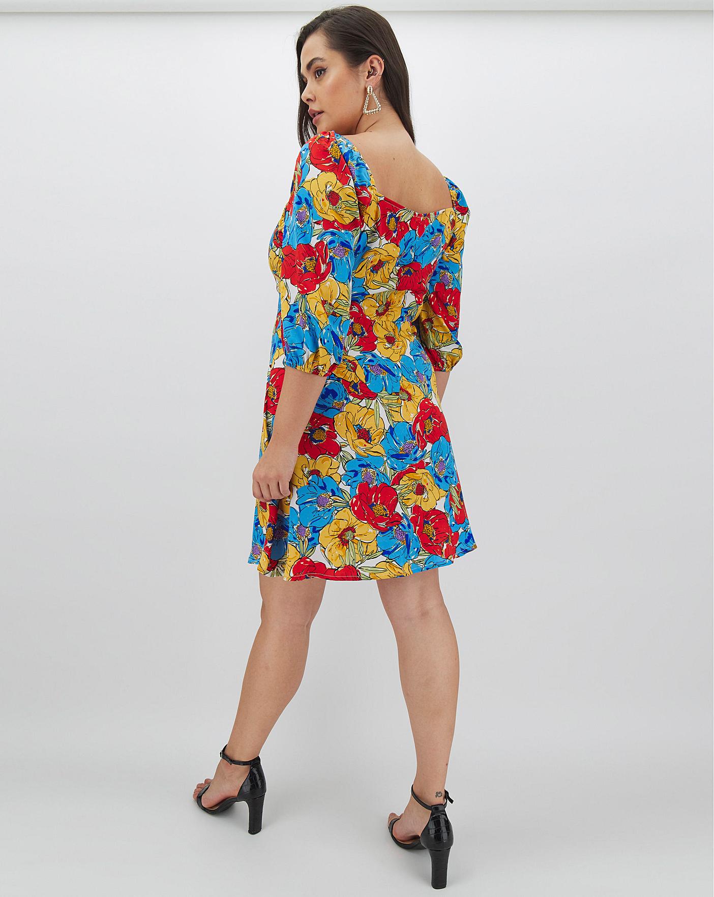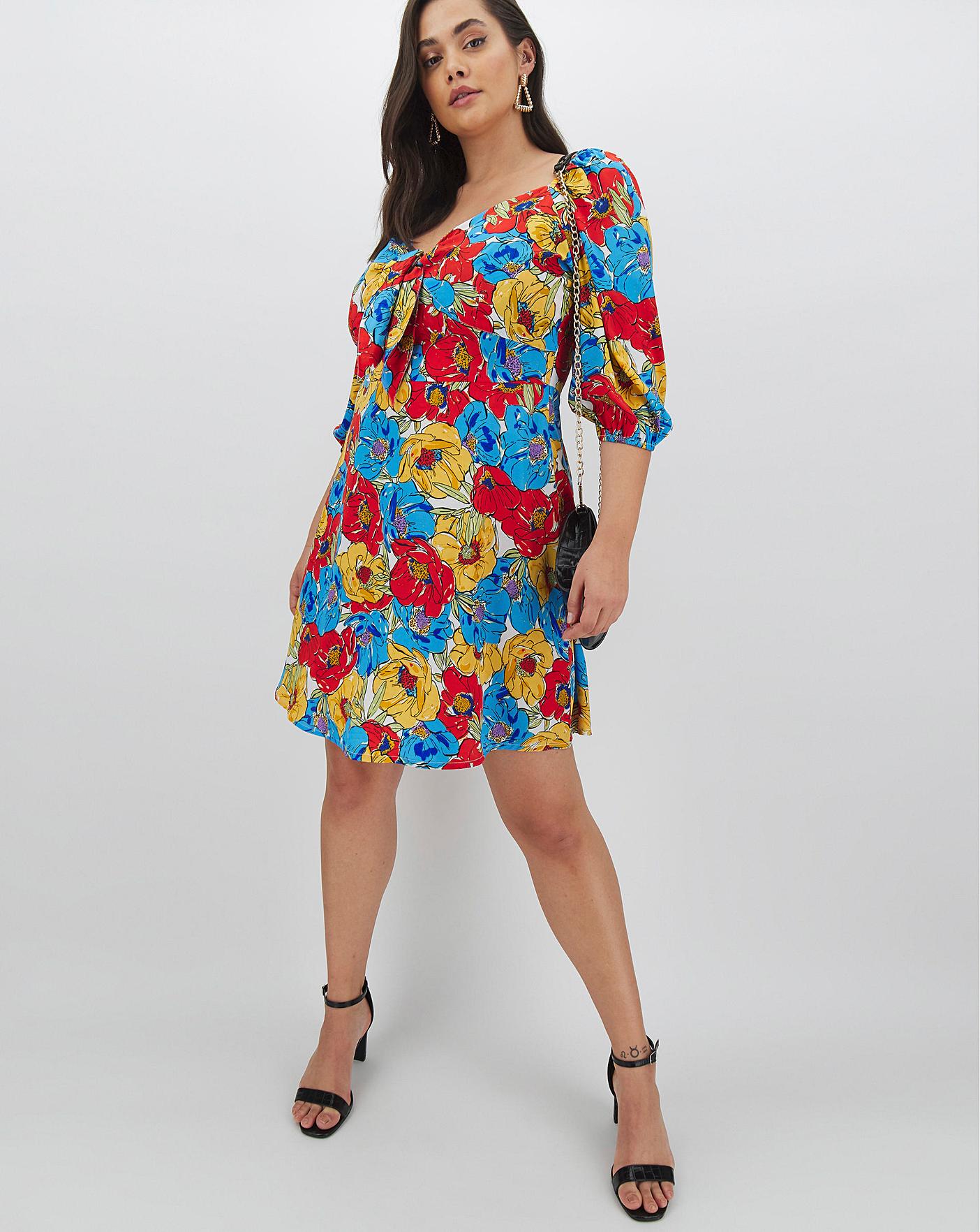 You will be sure to stand out in the gorgeous, on-trend floral printed mini dress by Neon Rose. Featuring an elasticated slight sweetheart neckline with tie-front detail, three-quarter sleeves, elasticated cuffs and a flattering fit-and-flare shape. Style with a leather jacket and heeled boots for a cool day-to-evening look.