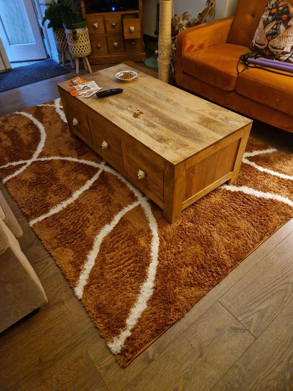 The rug has snug and cosy in the title but it is none of these. The pile looks shaggy but it does not provide comfort when standin...Cosy,warm looking rug .
