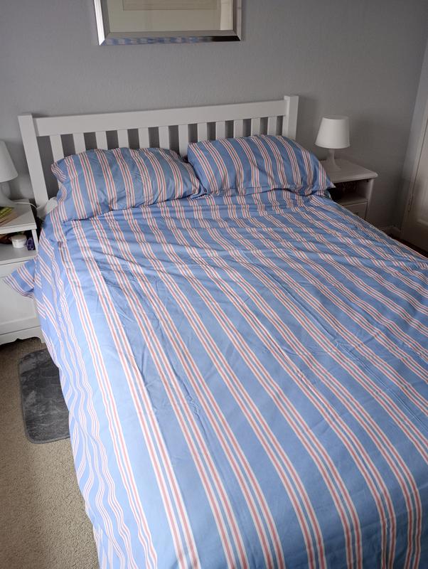 Got this on offer, very pleased. Washes well and the blue brings out the blue hues in my walls. Has a seaside vibe just right f...Okay but not great
