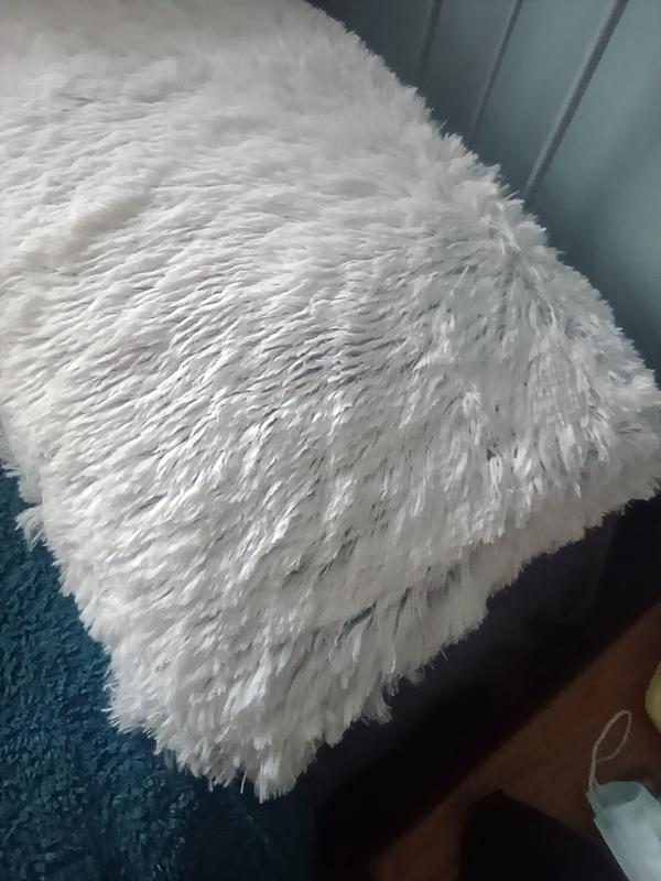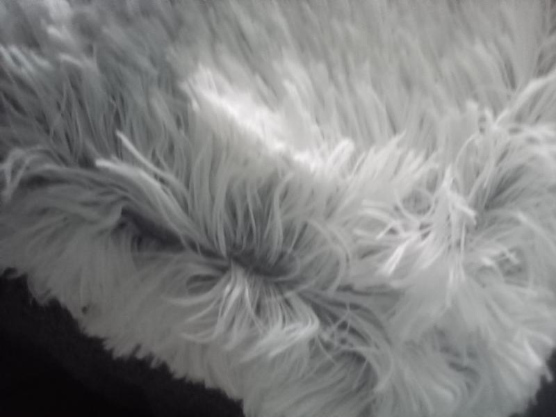 Gorgeous fluffy fur bolster , not the grey as in pic but a very light white grey. Grab one end & shake that makes the fur less fla...